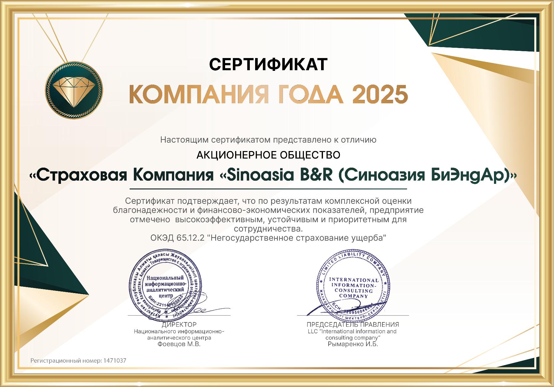 АО «Страховая компания «Sinoasia B&R» (SABR) признано лауреатом номинации «Компания года 2025», учрежденной Национальным информационно-аналитическим центром.
